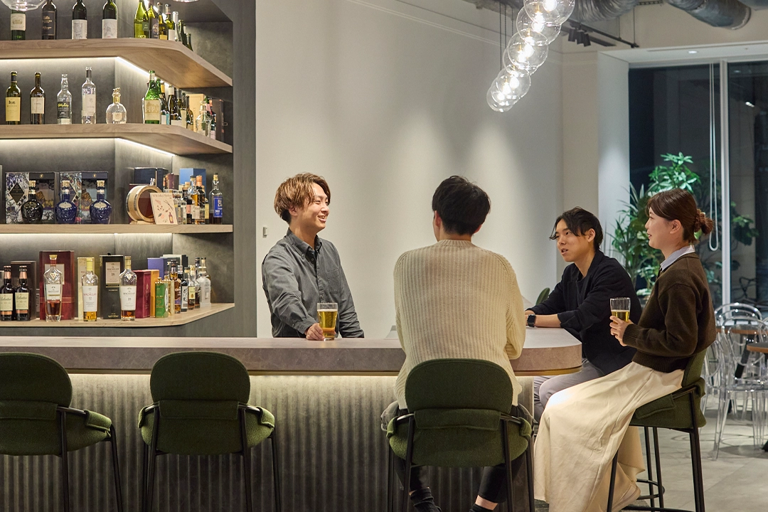 オフィスのバーカウンターやフリースペース、マッサージチェアで自由にリフレッシュする時間があります。 頭や心を切り替えながら生まれる新しいアイデアや視点が、個人の成長とチームへの価値創造につながります。